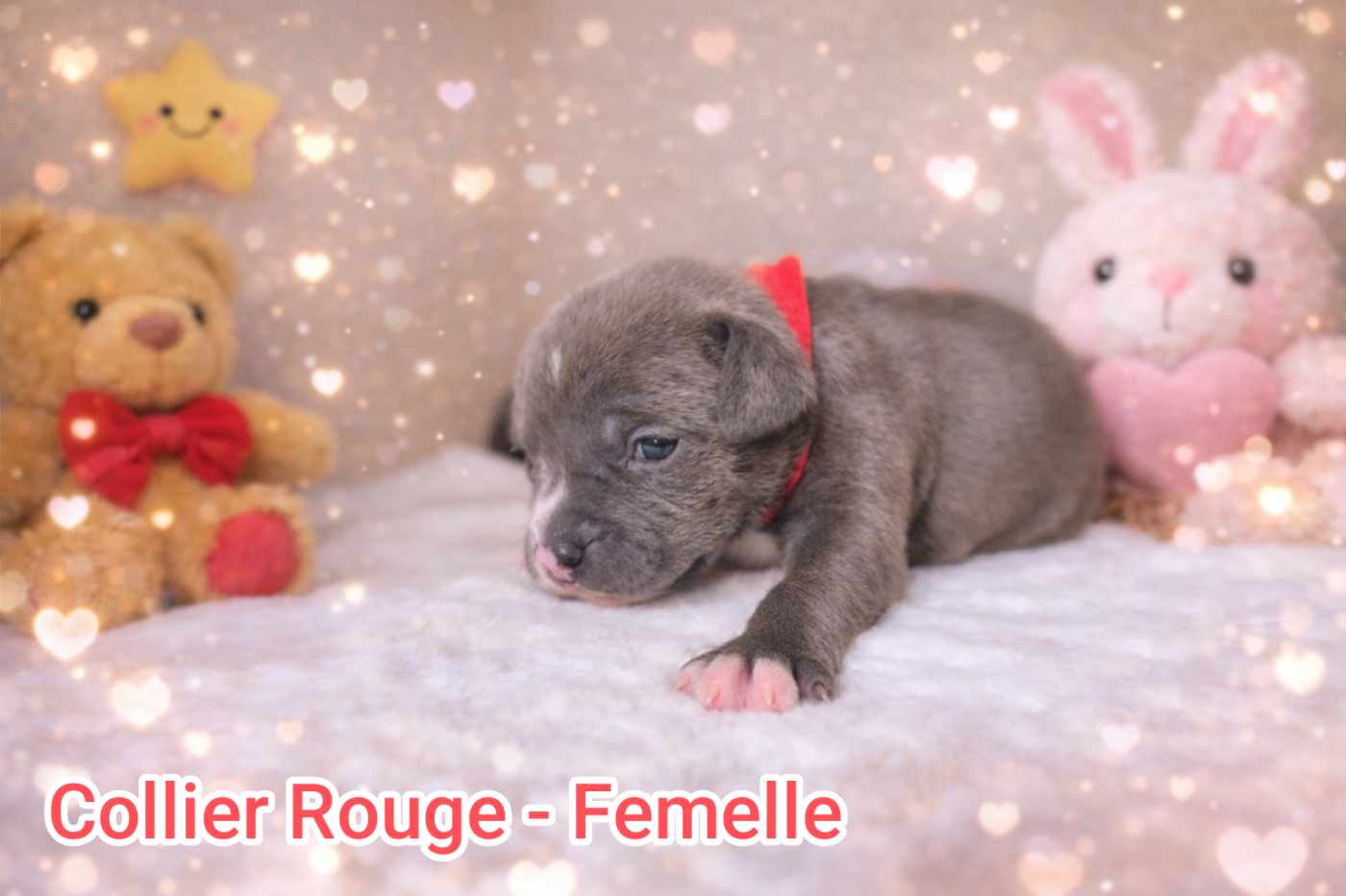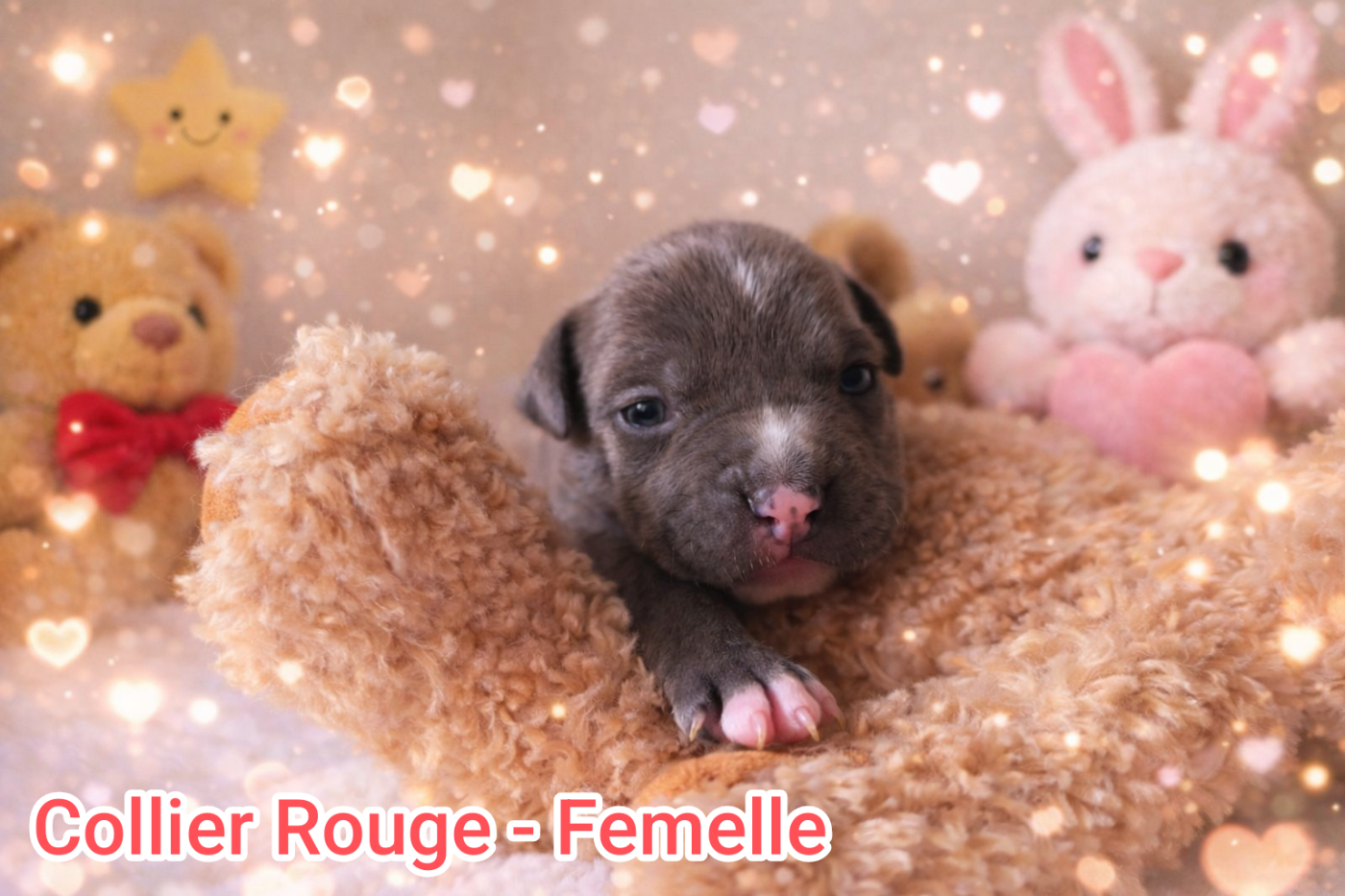 Les chiots sont nés le 24 février 2026 et seront disponibles à partir du 25 avril 2026.