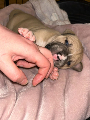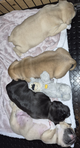 Nos chiots sont élevés à la maison avec beaucoup d'amour, enfants, chiens et chats et font l'objet d'un suivi de croissance rigoureux. Ce sont des bébés très vigoureux et déjà bien costauds !