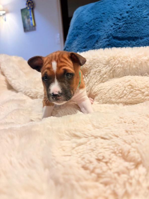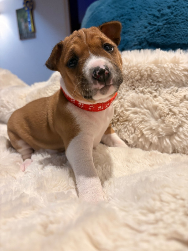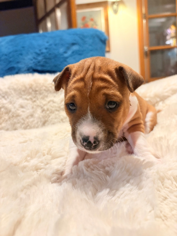 Nous avons le plaisir d’annoncer l’arrivée de 7 adorables chiots Basenji LOF, nés récemment à l’élevage :