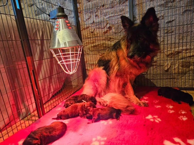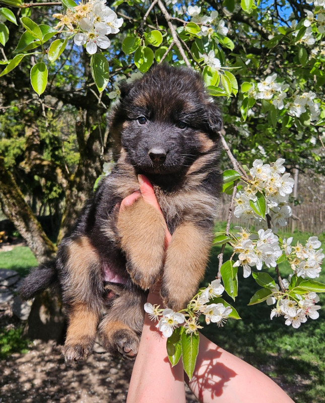 Chiots issus de très bonnes origines françaises et allemandes! Parents radiographiées hanches et coudes et indemnes de myélopathie dégénérative. Chiots élévés dans un environnement familial avec nos enfants.