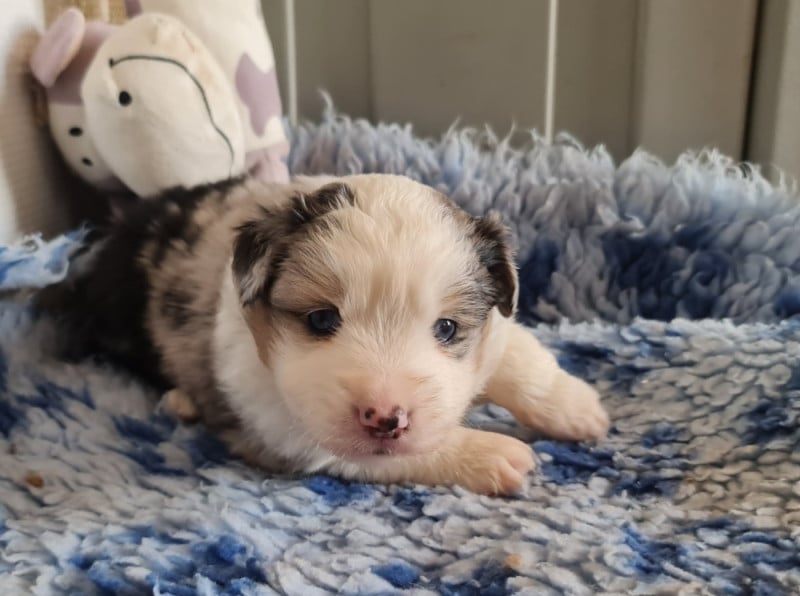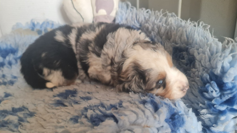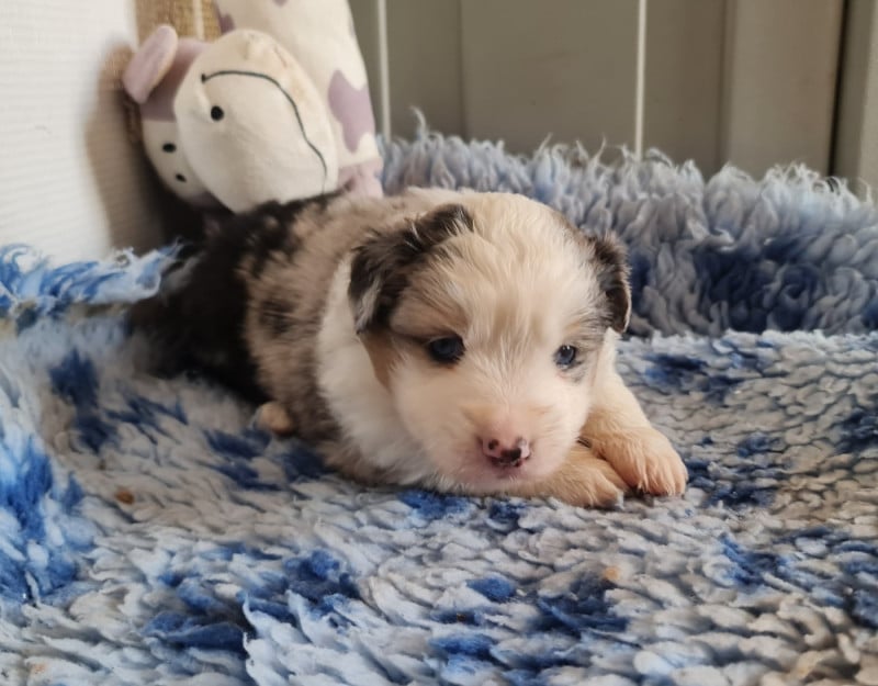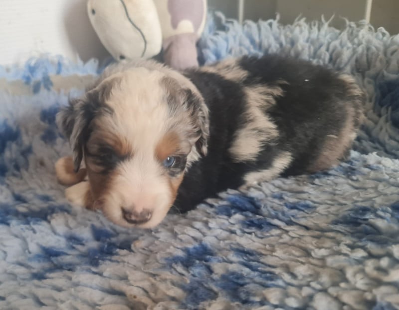 3 mâles bleu merle aux robes uniques et contrastées.