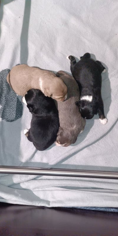 Portée composée uniquement de filles, il y a 2 noires tricolores, 1 rouge merle diluée et 1 bleu merle diluée.