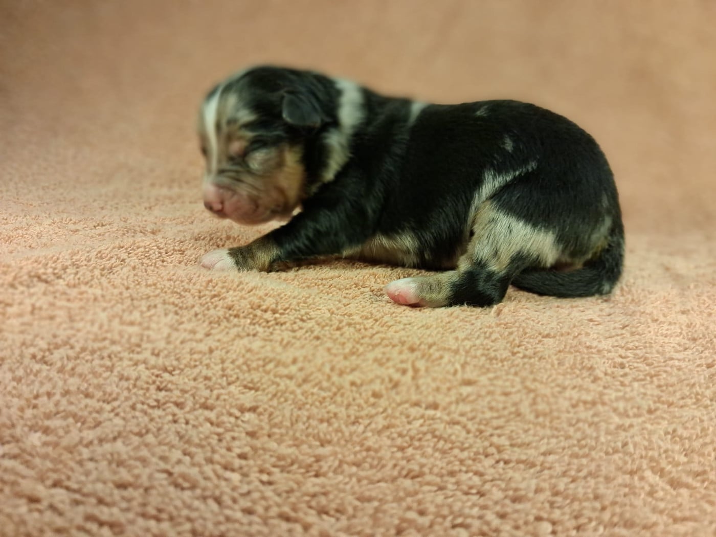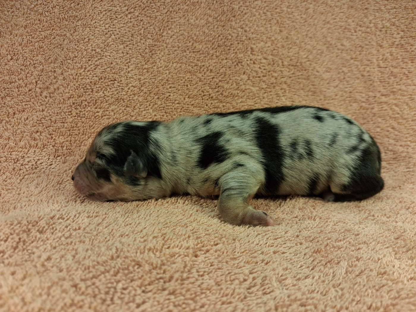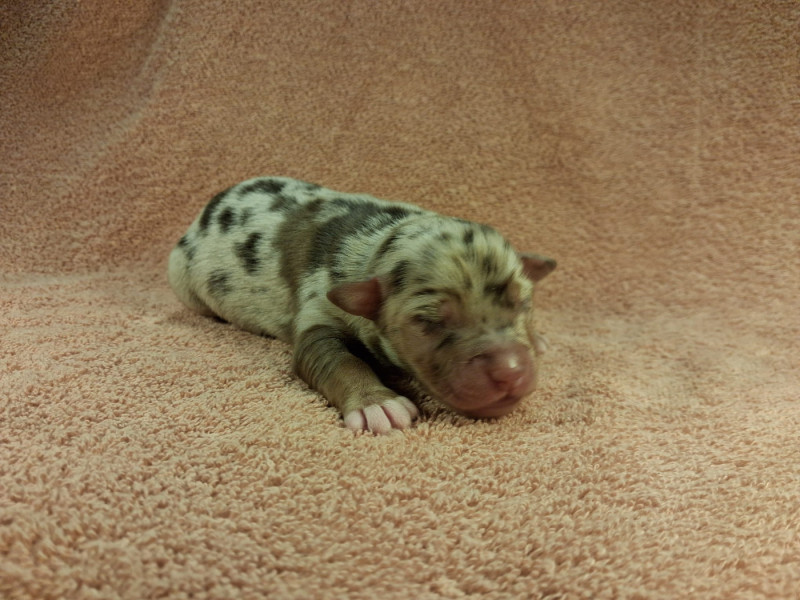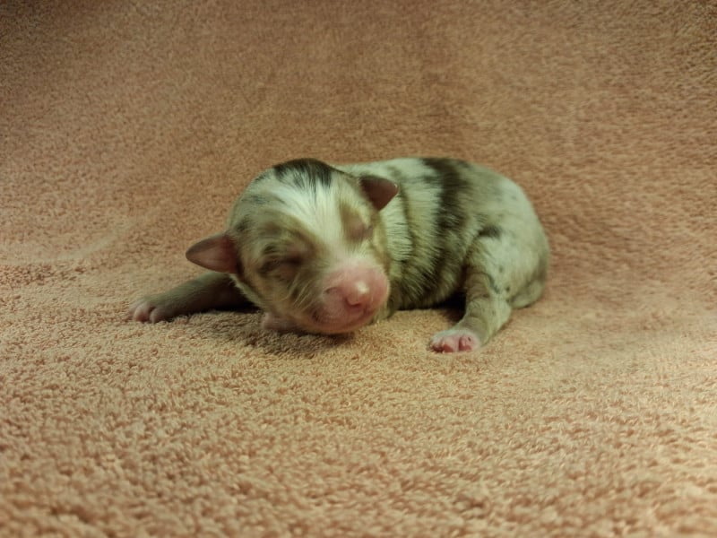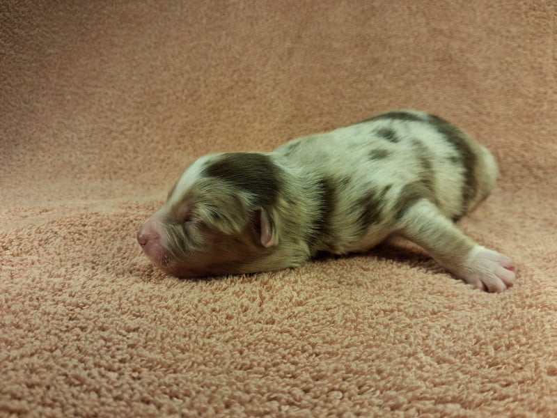 Uchka a donné naissance a 7 magnifiques chiots : -2 femelles rouge merle -1 femelle bleu merle -2 mâles noir tricolore -1 mâle rouge tricolore -1 mâle bleu merle