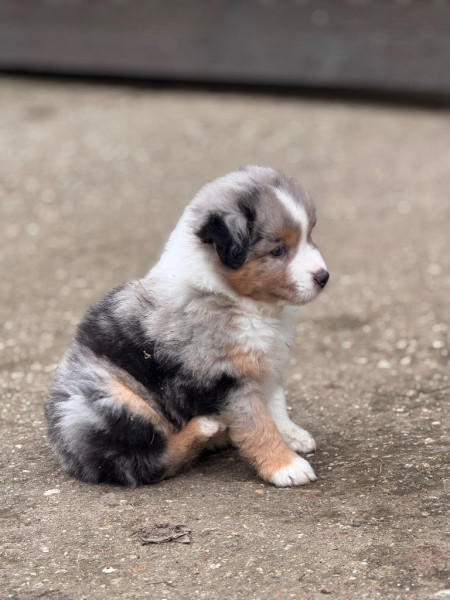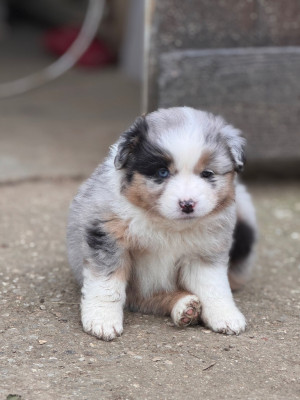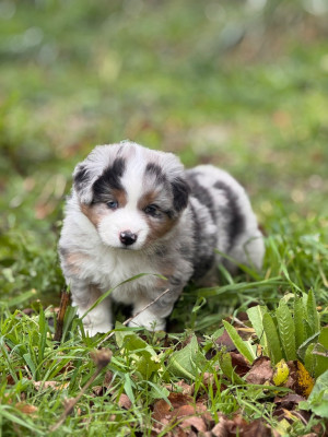 Magnifique portée de 7 chiots Berger Américain Miniature, nés le 4 novembre 2025 au Domaine de la Glanière (📍Mayenne – 53).