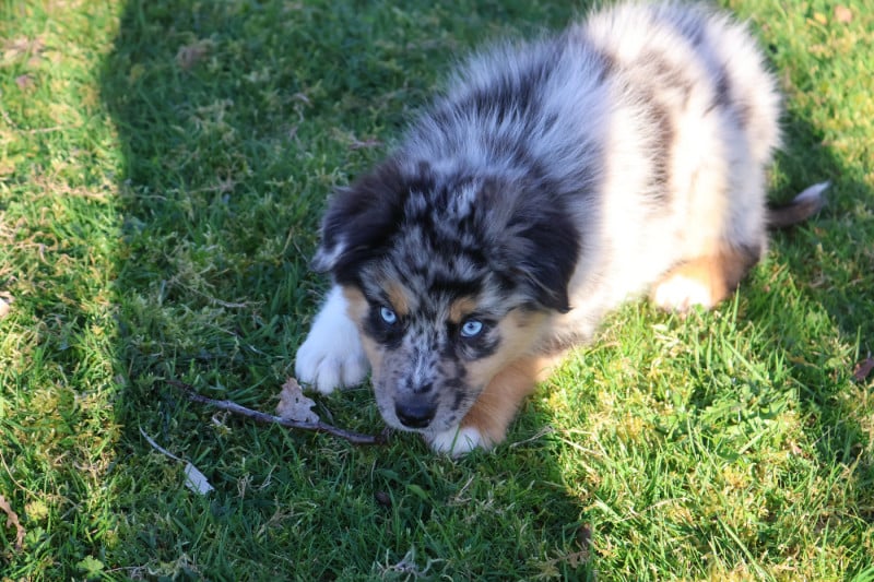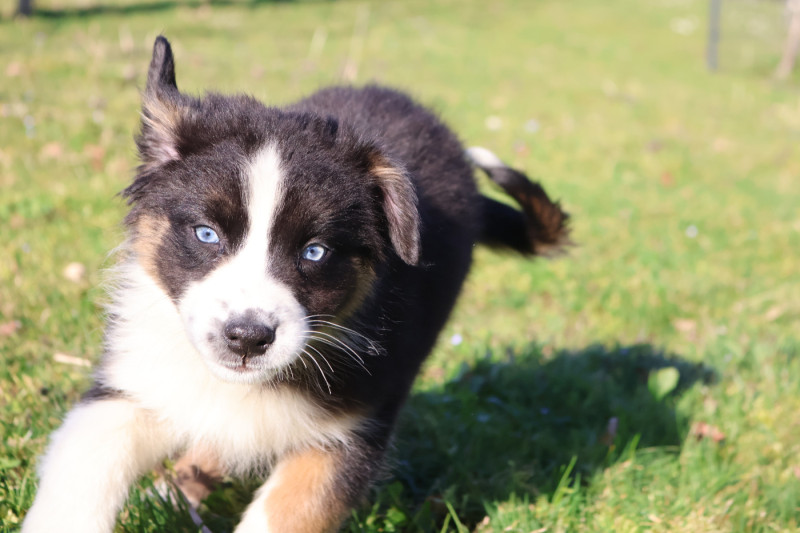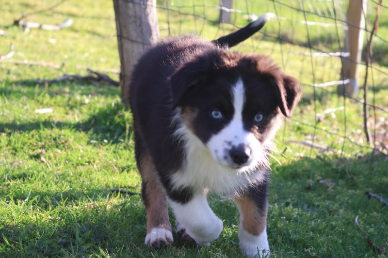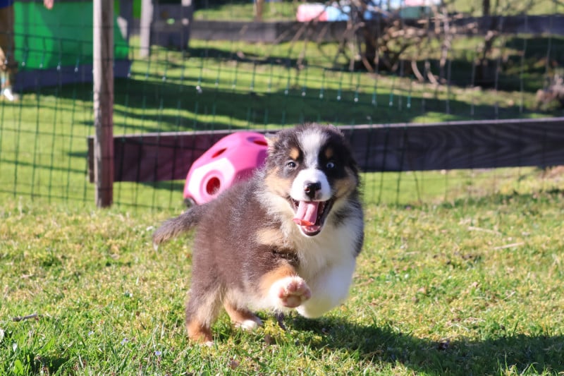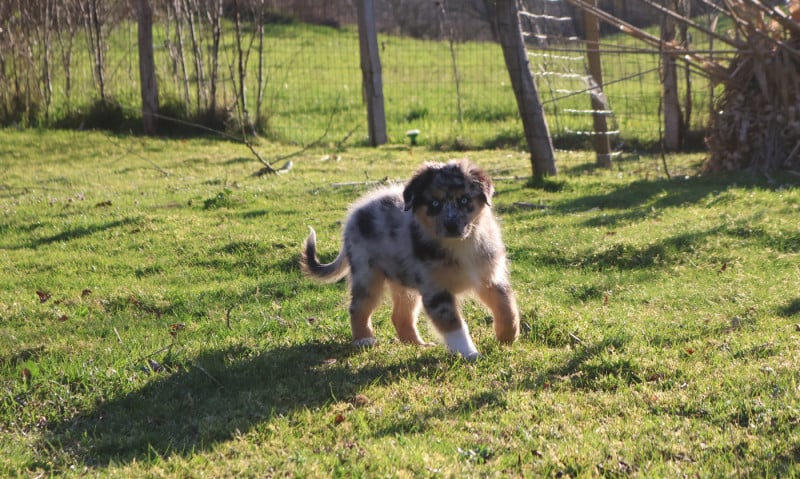 Silhouette de nos lignées : environ 19kg nos femelles et 25Kg nos mâles. Tout en restant dans le standard de la race, nous privilégions les petits gabarits car le Berger Australien est un chien de bergers, sa construction doit donc être compatible avec son utilisation première (un sujet lourd et au maximum de la taille autorisée est, à mon sens, non adapté).