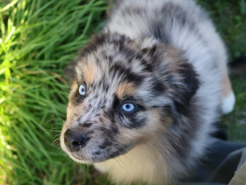 Gène Yeux Bleus (sur robe Merle et Solide) spécifique à certaines lignées que nous avons sélectionnées sur plusieurs générations.