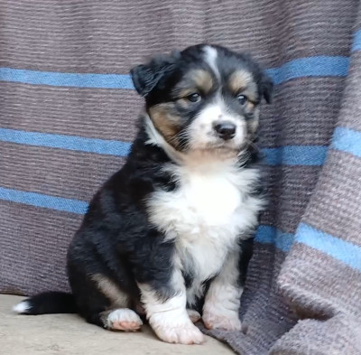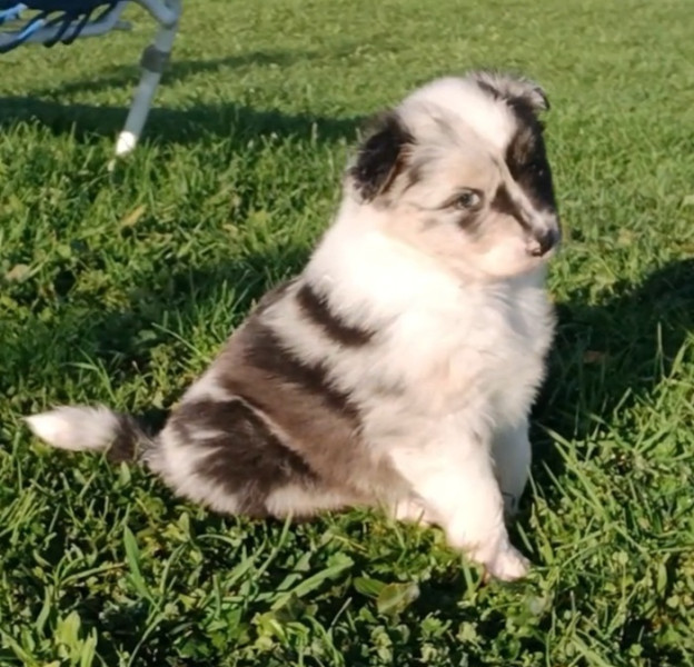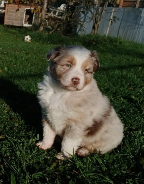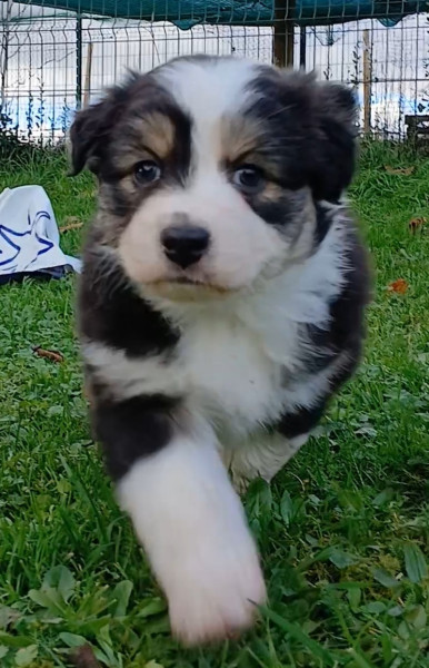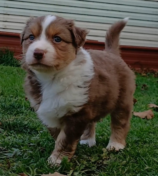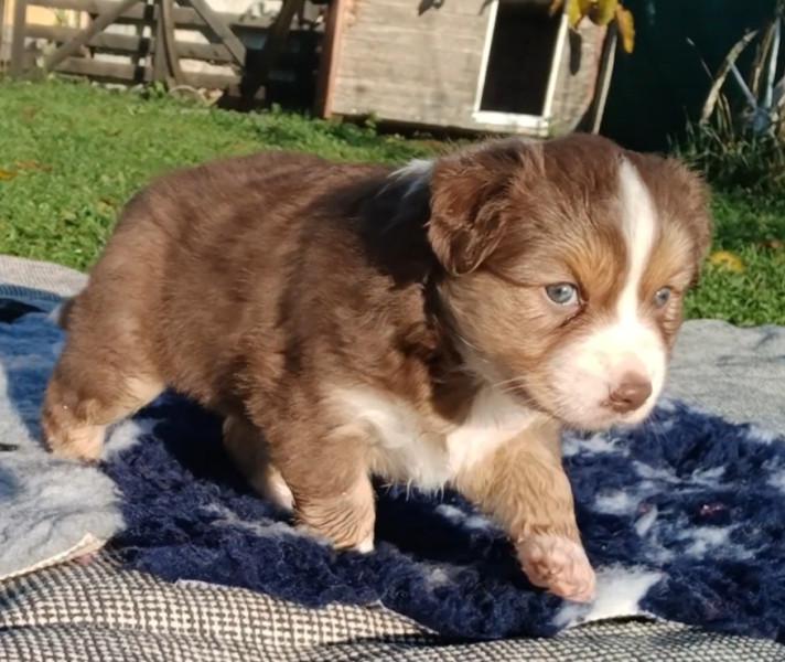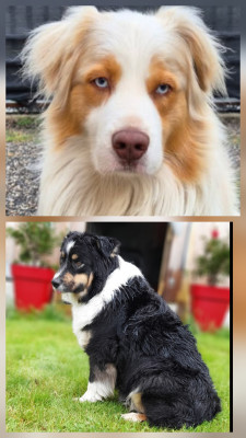 Le père, rouge merle, est affectueux et dynamique.