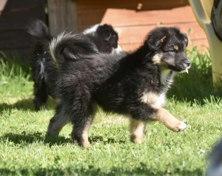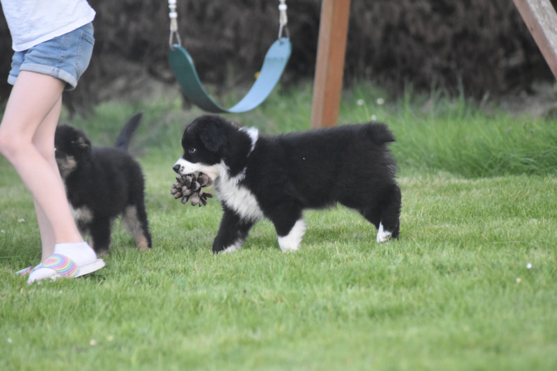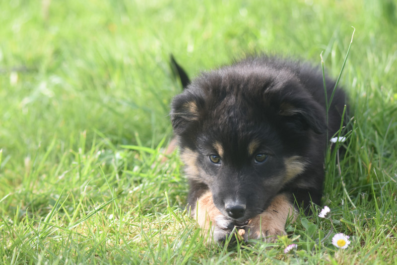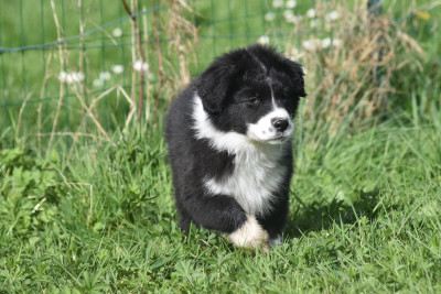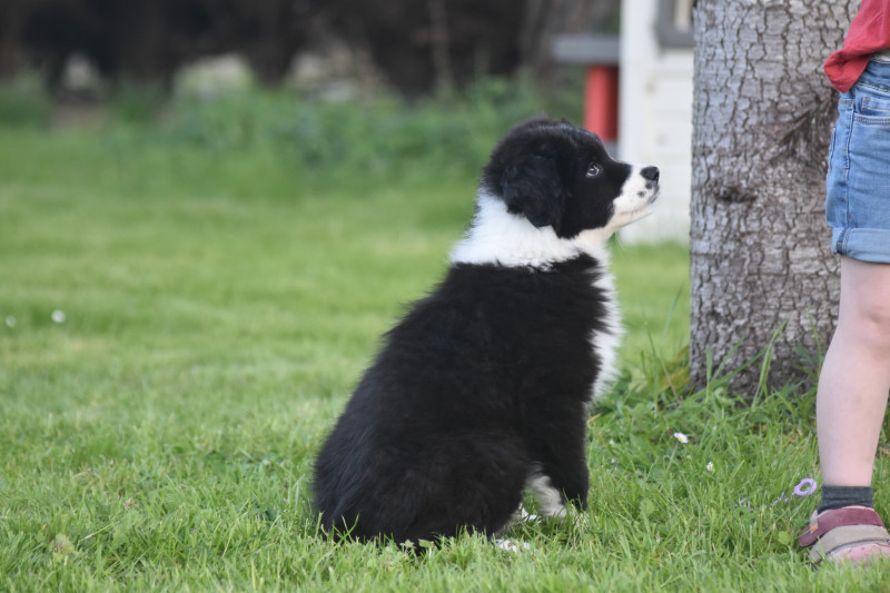 ? Tous nos chiots sont manipulés quotidiennement dès la naissance, habitués aux enfants, aux chats, aux autres chiens; désensibilisés aux bruits et odeurs du quotidien de la maison et de l?extérieur; habitués aux balades en laisse avec harnais; connaissent la voiture, la ville, les rencontres humaines et canines, le toilettage; partent vers 8 semaines avec leur kit chiot, vaccinés, pucés, inscrits au LOF;