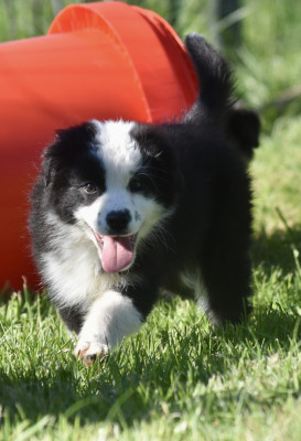 Petite puce super vive, énergique et hyper aventurière ! Aube a été la première de la fratrie à partir à la découverte de tout, elle est très à l?aise dans toute situation, rien ne l?inquiète, c?est un petit rayon de soleil. une chienne « heureuse de vivre » mais parfaitement capable de rester tranquille, c?est une chienne super bien dans ses petites pattes !