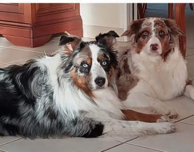 A VENDRE, CHIOTS BERGER AUSTRALIEN, VACCINES, PUCES, NON LOF, INSCRITS A L'ICAD, CERTIFICATS DE BONNE SANTE DELIVRES. (LES PARENTS SONT EN PHOTO).