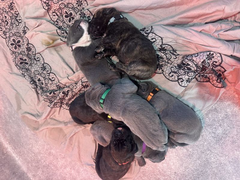 Les chiots sont en bonne santé, joueurs, équilibrés et déjà très proches de l?humain et notamment de nos filles de 5 et 2 ans qui garantissent des câlins au quotidien. Le Cane Corso est une race reconnue pour sa loyauté, son intelligence et son attachement à sa famille.