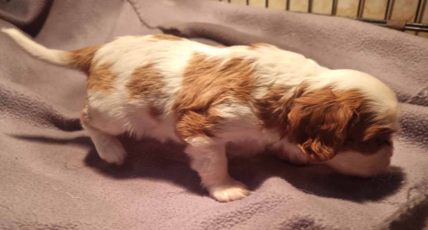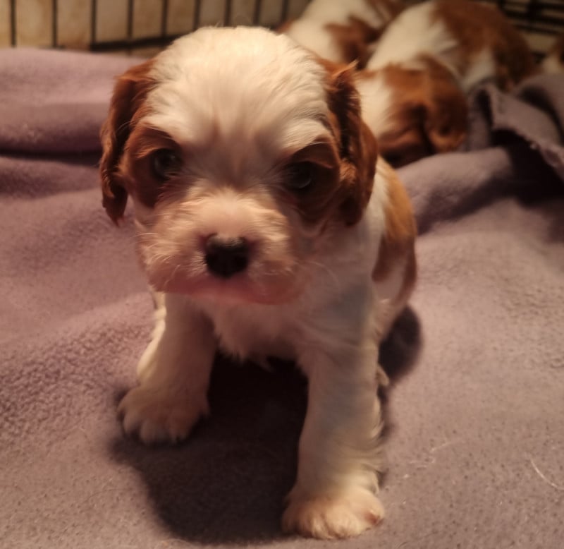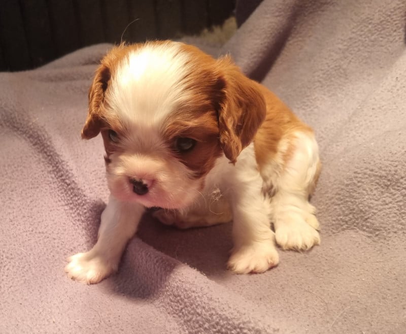 Sur notre dernière portée née le 12/01/2026, magnifiques chiots de race Cavalier King Charles, inscrits au LOF Les chiots pourront quitter l'élevage à partir du 16/03 Elevage professionnel des jardins de Vesco à Beaufort (secteur de Maubeuge), nos parents sont tous identifiés ADN, testés contre les maladies recommandées par le club de race (Tares oculaires par examen MHOC, anomalies cardiaques par echographie avec echo Doppler, Maladies génétiques - CKSID, MD, EFS) Ces tests sont enregistrés officiellement et nous tenons les résultats à votre disposition. Siren 79483323600019 APE 0149Z Certificat de capacité 59-797 N° de producteur LOF 598932 Les parents sont bien sûr visibles à l'élevage Nos chiots sont élevés avec nous, en contact avec enfants et chat dès le plus jeune âge. Parfaitement sociabilisés, nous leur faisons écouter régulièrement un large panel se bruits du quotidien et de l'extérieur pour qu'ils soient bien équilibrés et s'adaptent facilement à leur future vie de famille. Vous accueillerez votre chiot pucé, vacciné, muni de son certificat de naissance LOF et d'un livret d'accueil créé par nos soins. Nous assurons un suivi tout au long de la vie de votre chien pour mieux vous accompagner, les contacts sont possible via notre page FB, notre site, par mail ou téléphone