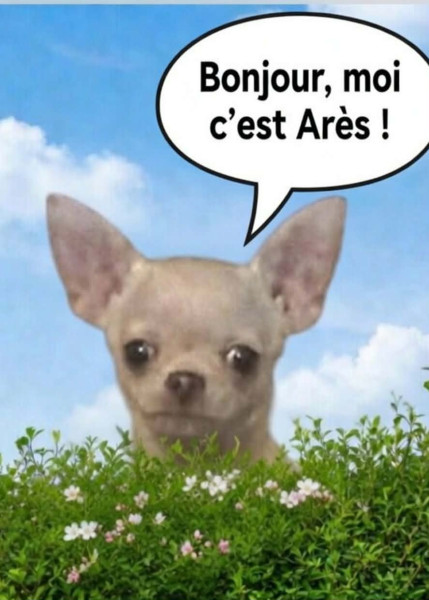 - Arès, de couleur sable très clair (crème), poils courts,