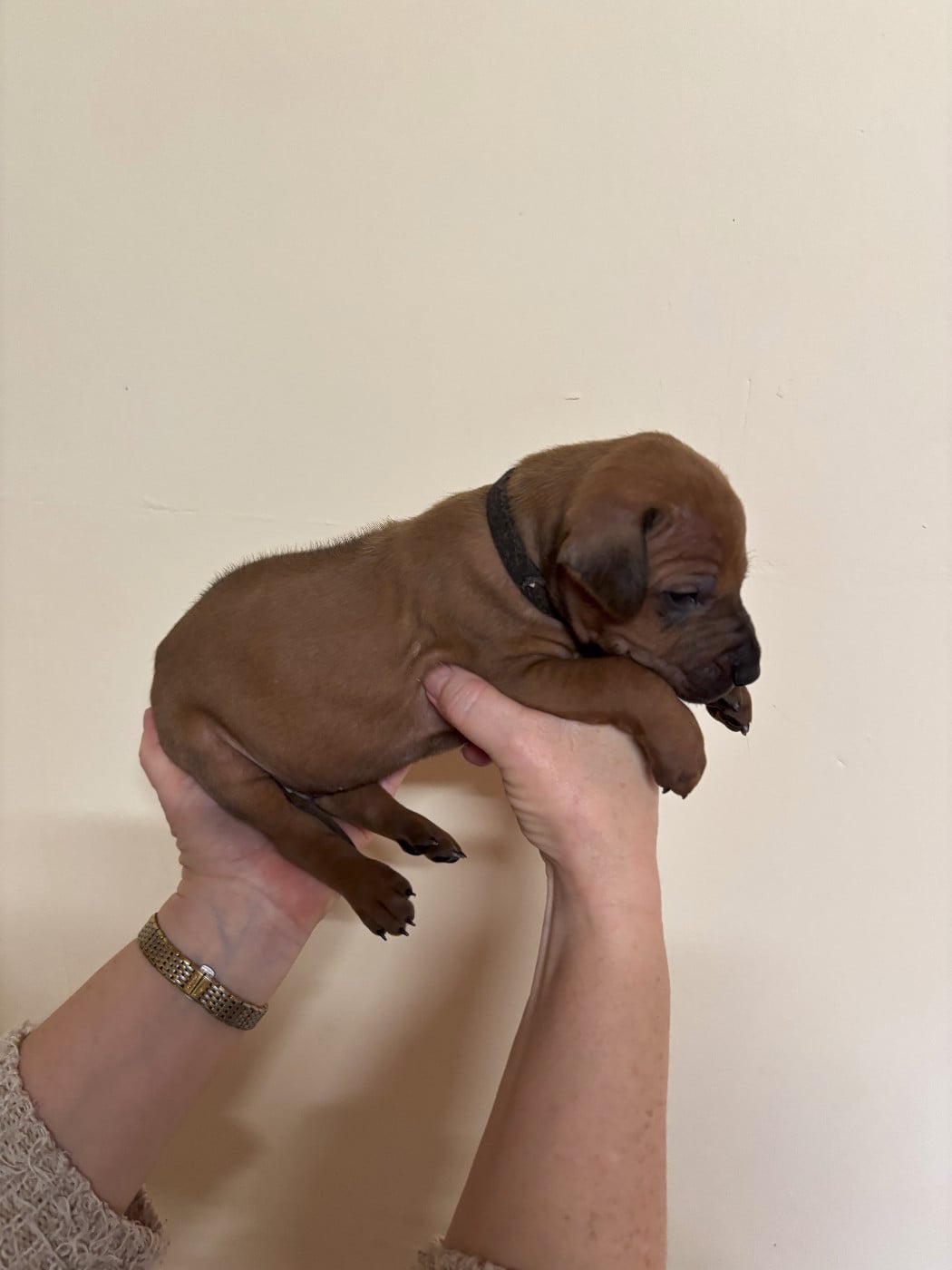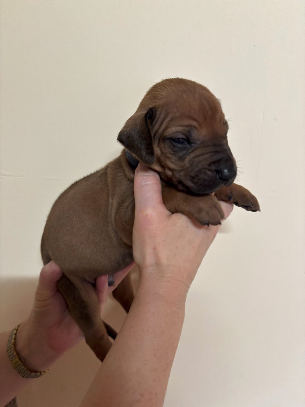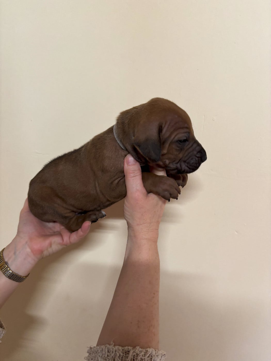 Topaze à mis au monde 14 magnifiques chiots dans la nuit du samedi à dimanche 15 février 2026. 7 mâles et 7 femelles, tous confirmables avec des ridges parfait et une très belle couleur fauve orangée. Les chiots seront disponibles vers le 15 avril et partiront pucés, pré-vaccinés et vermifugés 3 fois. Ils auront un certificat de bonne santé effectué par mon vétérinaire et partiront avec un kit chiot et de l'aliment pour 10 jours. Les parents sont indemnes de maladies transmissibles et sont indemnes de dysplasie hanches, coudes et épaules ( voir les fiches des parents ) sur mon site ou à la société centrale canine.