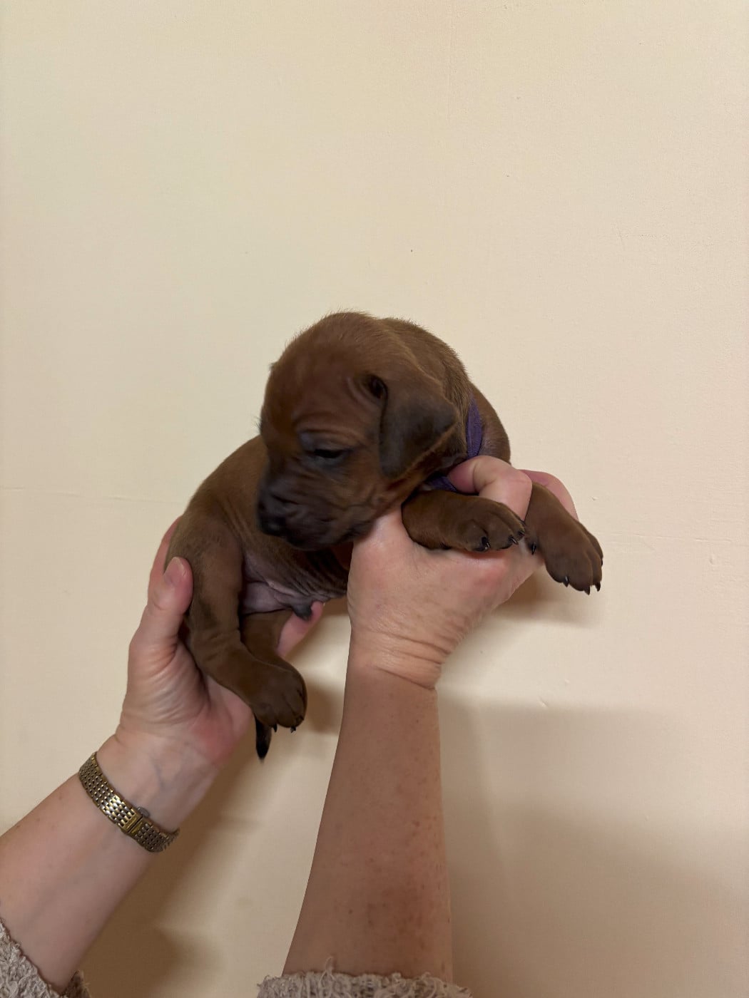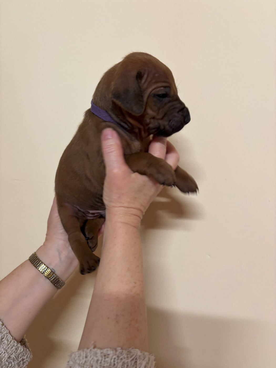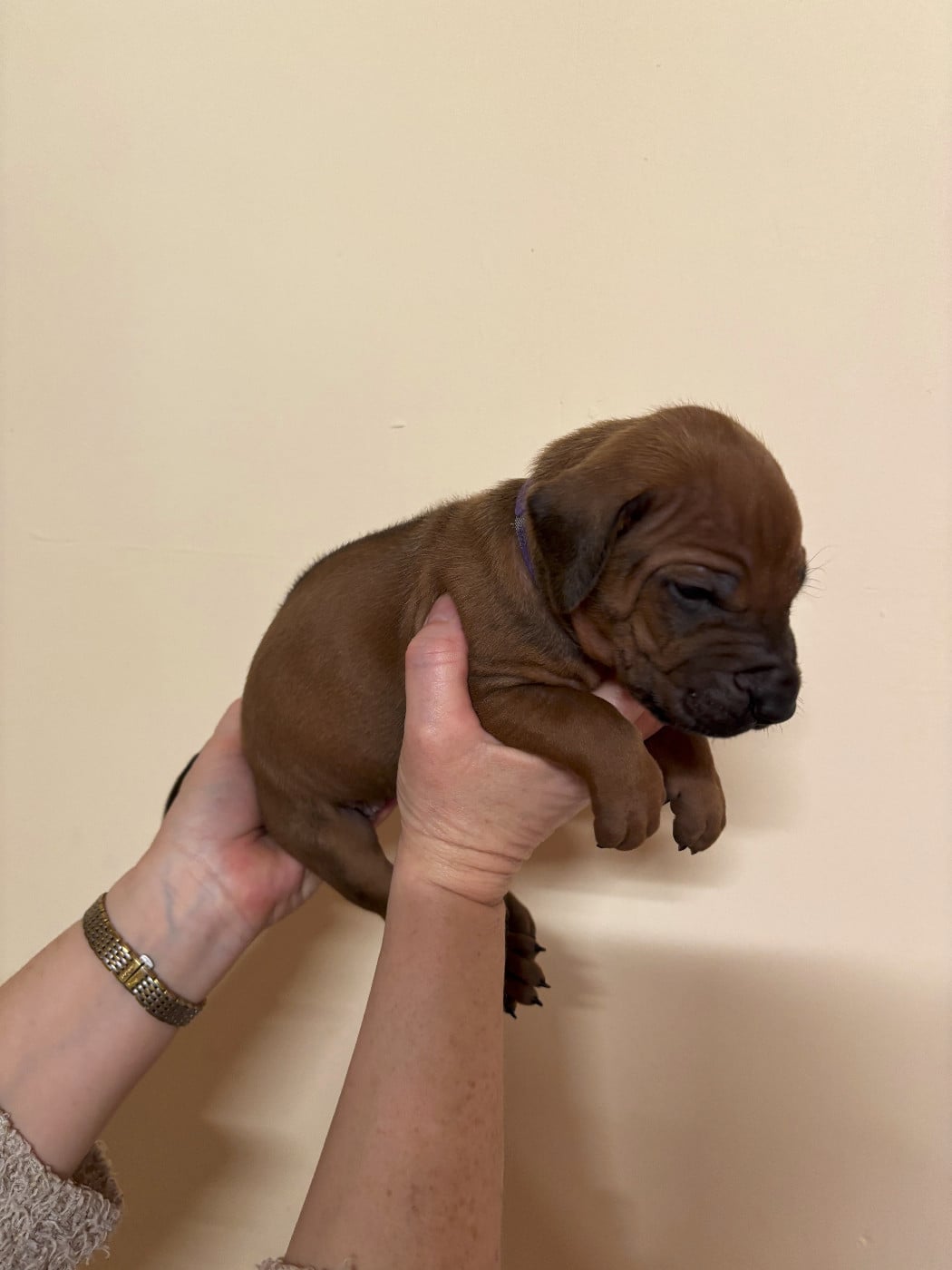 Topaze à mis au monde 14 magnifiques chiots dans la nuit du samedi à dimanche 15 février 2026. 7 mâles et 7 femelles, tous confirmables avec des ridges parfait et une très belle couleur fauve orangée. Les chiots seront disponibles vers le 15 avril et partiront pucés, pré-vaccinés et vermifugés 3 fois. Ils auront un certificat de bonne santé effectué par mon vétérinaire et partiront avec un kit chiot et de l'aliment pour 10 jours. Les parents sont indemnes de maladies transmissibles et sont indemnes de dysplasie hanches, coudes et épaules ( voir les fiches des parents ) sur mon site ou à la société centrale canine.