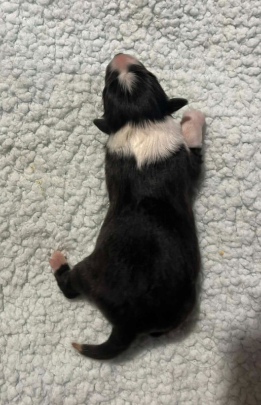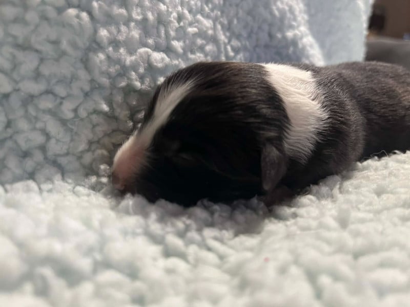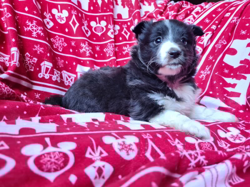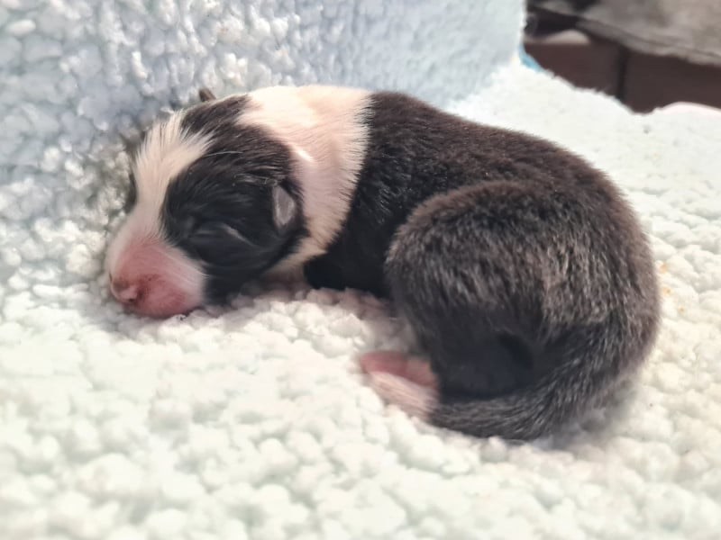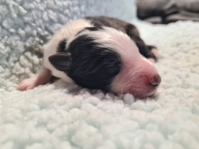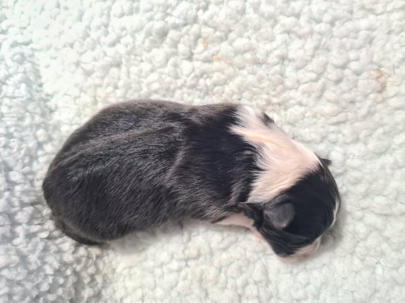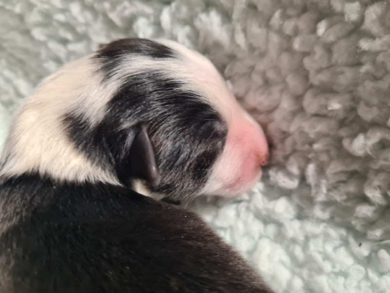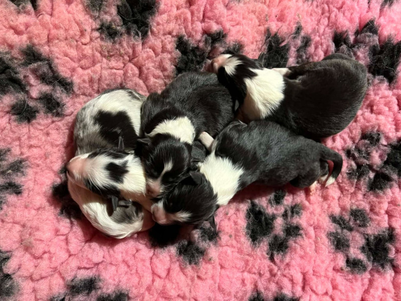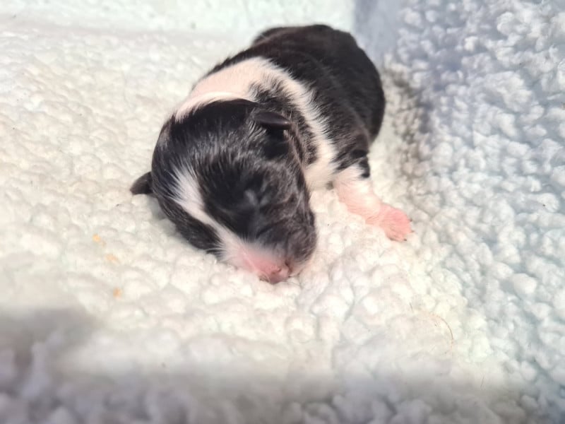 3 mâles bicolores noirs, 1 mâle bicolore bleu et 1 femelle bicolore noire. Chiots de QUALITÉ : mère RECOMMANDEE 4 points par le Shetland Club De France, CSAU issue de 2 parents ELITE A. Père NHAT et NHATO + Agility 3