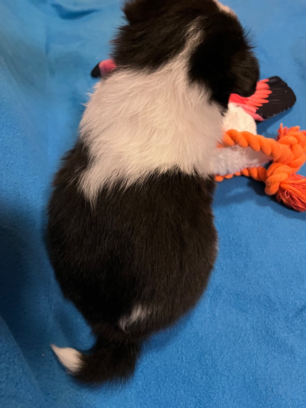 Tsuga du Bois de Morchene 36 cm au garrot , tricolore ( noire, fauve et , blanc) est une louloute discrète et douce aimants les câlins et joueuse , très proche de ses humains et de ses premiers bébés.