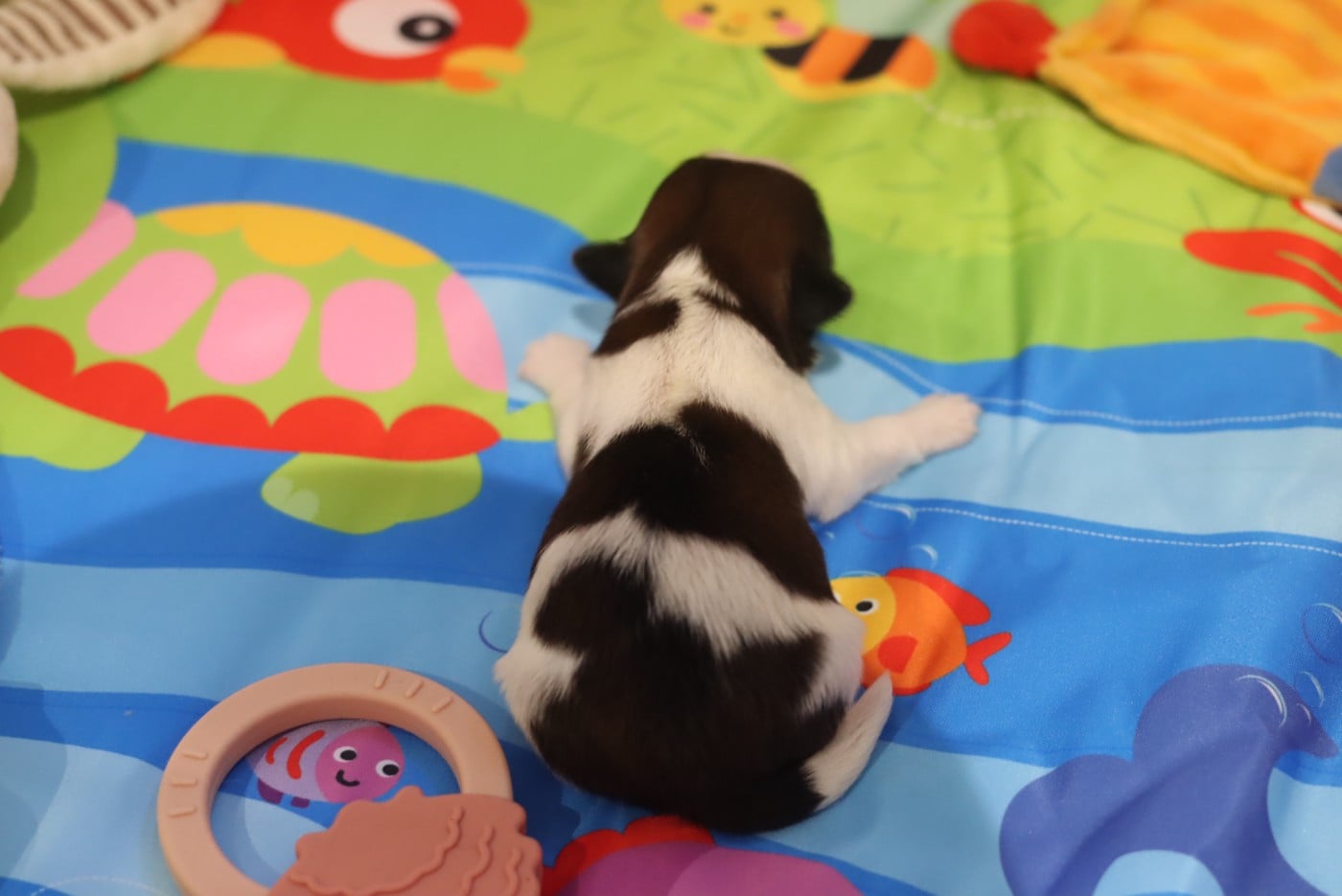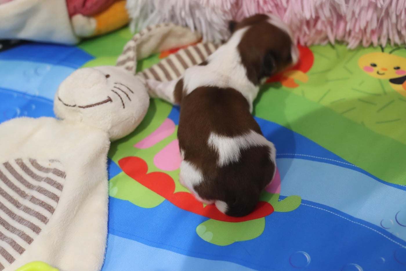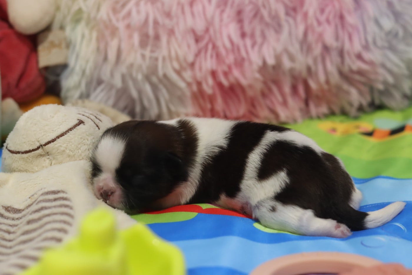 Dans son package il y a aussi son harnais boddy, une laisse, ses peluches, son tapis "pipi" etc ...