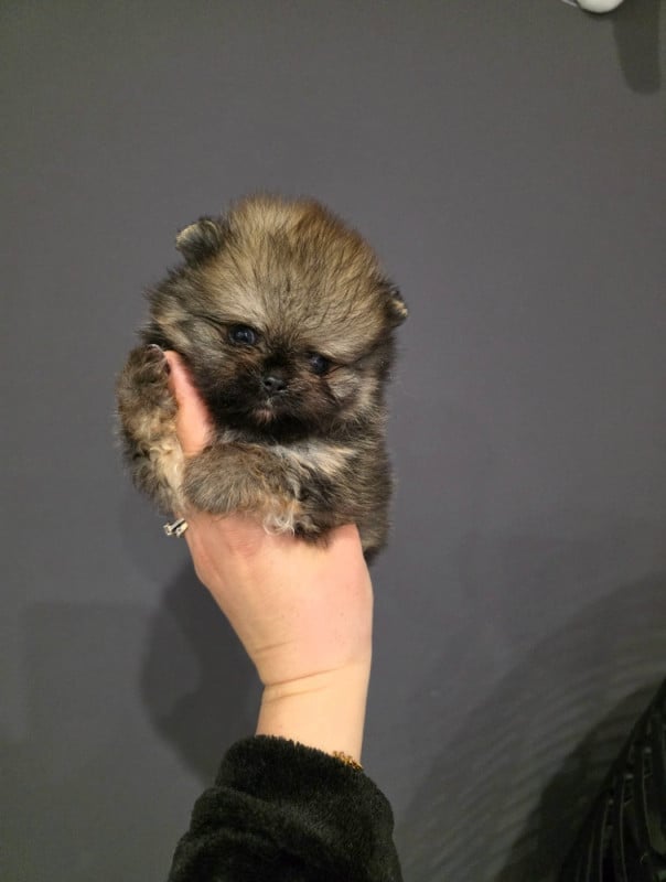 Côté maman: son papa ***Aslan Poms Rolex***, Spitz Pomeranian Nain 20 cm 1kg 800, Italien, robe Black an Tan. Fils du très célèbre Multi CH d'Amérique. ***Dan Star Kom Sharming Best Boy ***nain. Sa maman naine aussi fait 19 cm, une jolie crevette très typée ***Victory's Flame Destiny*** fille de Multi CH RUS et BLR. ***Aslan Poms Rolex***, lignée CH World, et International. D'une lignée prestigieuse, et exclusive en France, elle a été sélectionnée avec rigueur, il détient les plus grands noms d'élevages mondialement connus qui ont fait leurs preuves sur les rings. Parmis eux : Sunterra, Silhouette, Mountain, Victory?s Flame, Bravo?s, Chiao Li Ya... orignines USA, CAN, Thai , Russe Italienne ***Aslan Pom Rolex*** fils du célèbre Multi CH USA. dan star kom Sharming best boy,petit fils du Multi CH. chriscendo Candid shot et de Multi CH. pinecrest's Little miss sunschine, ar petit fils de Multi CH. silhouette Say it right, et de Multi CH. pinecrest's Ostentacious et de Multi CH. pinecrest's Shimmer, ara r petit fils du Multi CH. chriscendo Communicado, du Multi CH. tokie's Mercury, Multi CH. chinadoll's Sudden impact du côté de papa, aussi époustouflent côté maman que voici petit fils de Multi CH Victory?s Flame Destiny, ar petit fils du Multi CH. silhouette's Sojourner akavegas et du Multi CH. victory's flame Given by crystal carmina et du Multi CH. damascusroad Tell me no lies et du Multi CH. bravo's Crystal clear of lenette, ar ar petit fils du Multi CH. mountain crest Traveling man, du Multi CH & Interational . hitimes Read my lips, du Multi CH. The edg of a dream pomhaven's, Multi CH. Bandmaster of Linette.