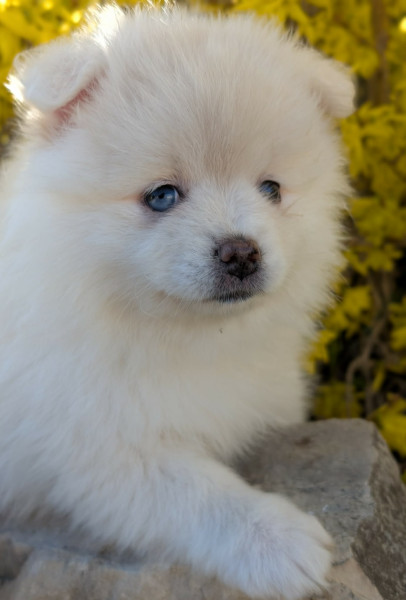 * Bulle femelle blanche avec un ?il particolor. Elle est intrépide, très câline et joueuse.