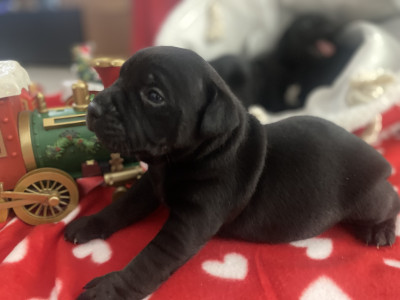 Nous annonçons la naissance de petits Staffordshire Bull Terrier de couleur noir, inscrite au Livre des Origines Françaises (LOF). Née le 30 Novembre 2025, ils seront disponible 31 Janvier 2025