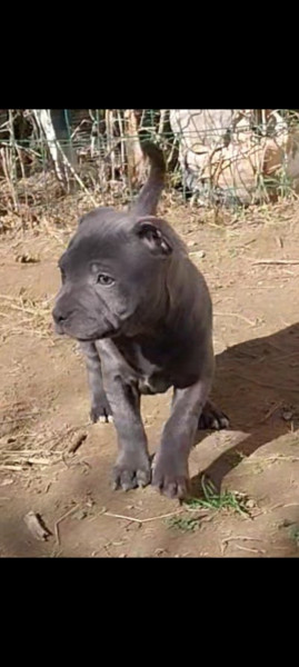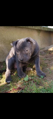 Superbe femelle Staffie LOF bleu tache blanc, née le 29/12/2025, disponible immédiatement.