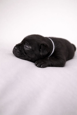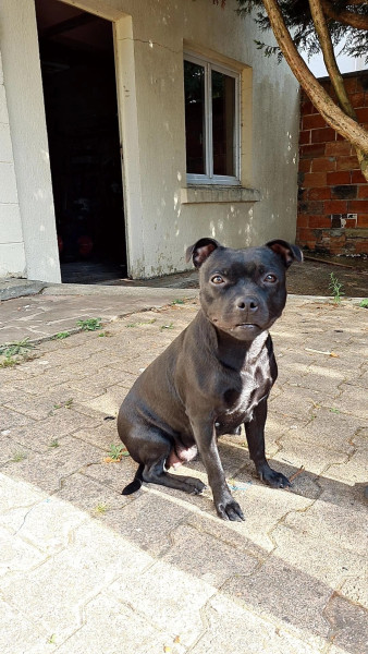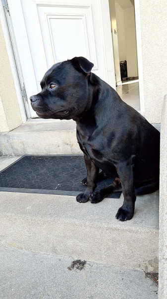 Découvrez une portée absolument magnifique de Staffordshire Bull Terrier LOF, nés le 16 mars 2026, tous de robe noire intense et dotés d?une morphologie déjà très équilibrée.