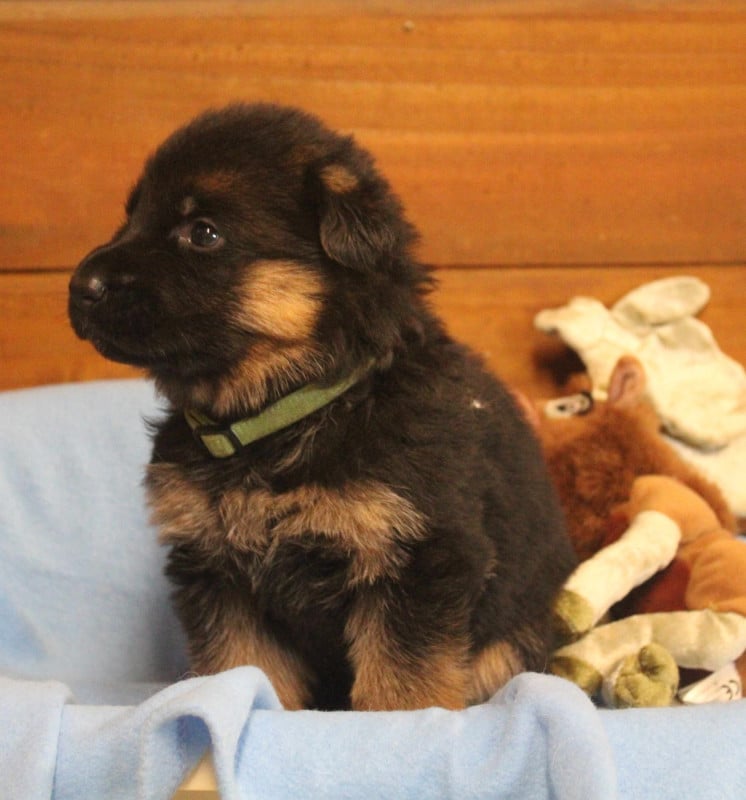 La maman est une femelle noir et fauve de lignée "ancien type" à dos plutôt horizontal, rustique, indemne de dysplasie des hanches et des coudes, testée ADN dotée d'un caractère agréable à vivre, très sociable et bonne gardienne.