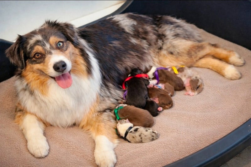 Arya est l’heureuse maman de 8 magnifiques chiots Berger Australien :