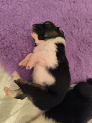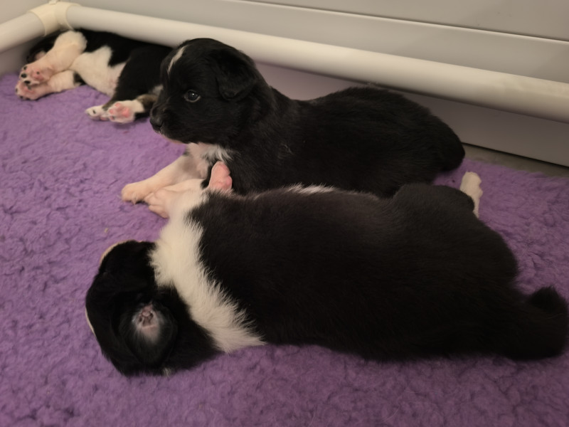 5 chiots mâles noirs bicolores (queues longues) ou tricolores (queues courtes) nés le mardi 7 octobre 2025 . Ils pourront rejoindre leurs familles à partir du mardi 9 décembre 2025.