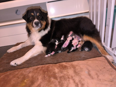 Toute cette jolie petite famille vie à la maison, les parents sont visibles sur place ... La socialisation se fait donc au quotidien, aux côtés d'autres chiens, de chats et de poneys pour un environnement riche afin d'aider à leur bon développement et interagir avec le monde extérieur ! Mais pour leur bon équilibre, tout cela sera à poursuivre à vos côtés ... Un berger australien qui a des besoins comblés et qui est éduqué est un super chien de famille, n'hésitez pas à vous renseigner sur cette merveilleuse race !