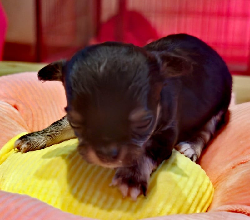 A réserver chiots chihuahuas à poil long, inscrits au lof, nés le 20 novembre 2025.