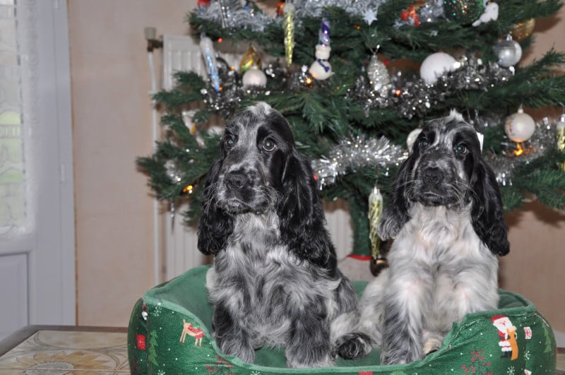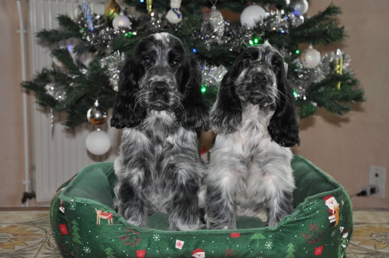 Jolie portée très homogène. Les parents sont téstés indemnes de tares héréditaire cocncernant la race du cocker anglais et diagnostiqués dysplasie A A pour chacun d'eux.