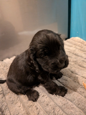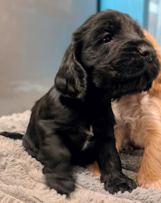 Magnifique chiot noir Cocker Spaniel Anglais LOF (Livre des Origines Françaises) disponible à la réservation.
