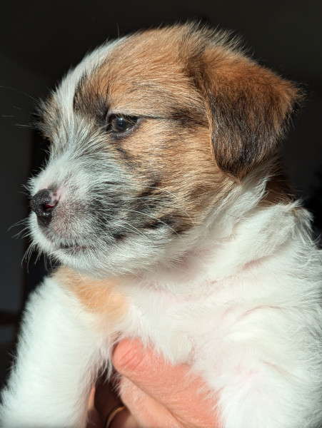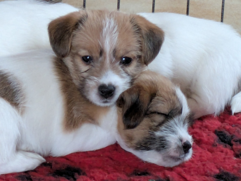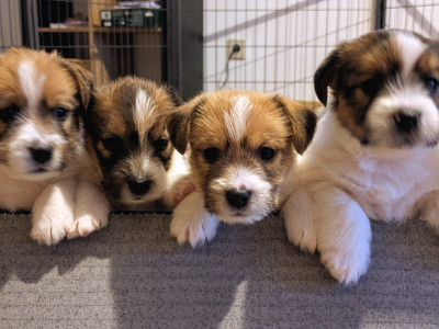 À vendre 5 adorables chiots Jack Russell à poils durs LOF nés le 18 novembre.