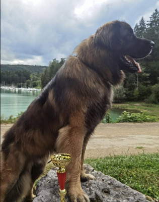 Elle est indemne de dysplasie hanches et coudes et des maladies recherchées chez le Leonberg.