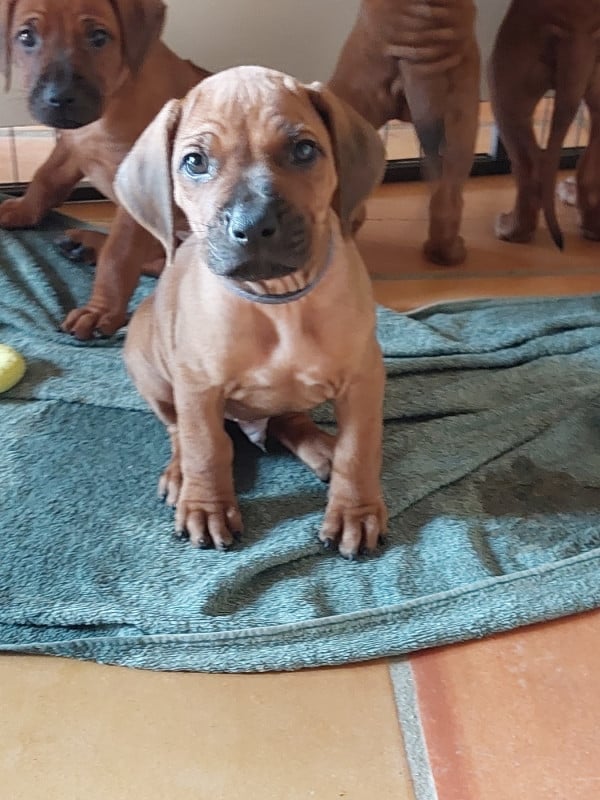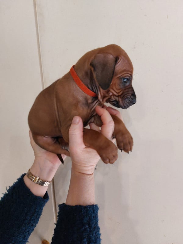 Topaze à mis au monde 14 magnifiques chiots dans la nuit du samedi à dimanche 15 février 2026. 7 mâles et 7 femelles, tous confirmables avec des ridges parfait et une très belle couleur fauve orangée. Les chiots seront disponibles vers le 15 avril et partiront pucés, pré-vaccinés et vermifugés 3 fois. Ils auront un certificat de bonne santé effectué par mon vétérinaire et partiront avec un kit chiot et de l'aliment pour 10 jours. Les parents sont indemnes de maladies transmissibles et sont indemnes de dysplasie hanches, coudes et épaules ( voir les fiches des parents ) sur mon site ou à la société centrale canine.