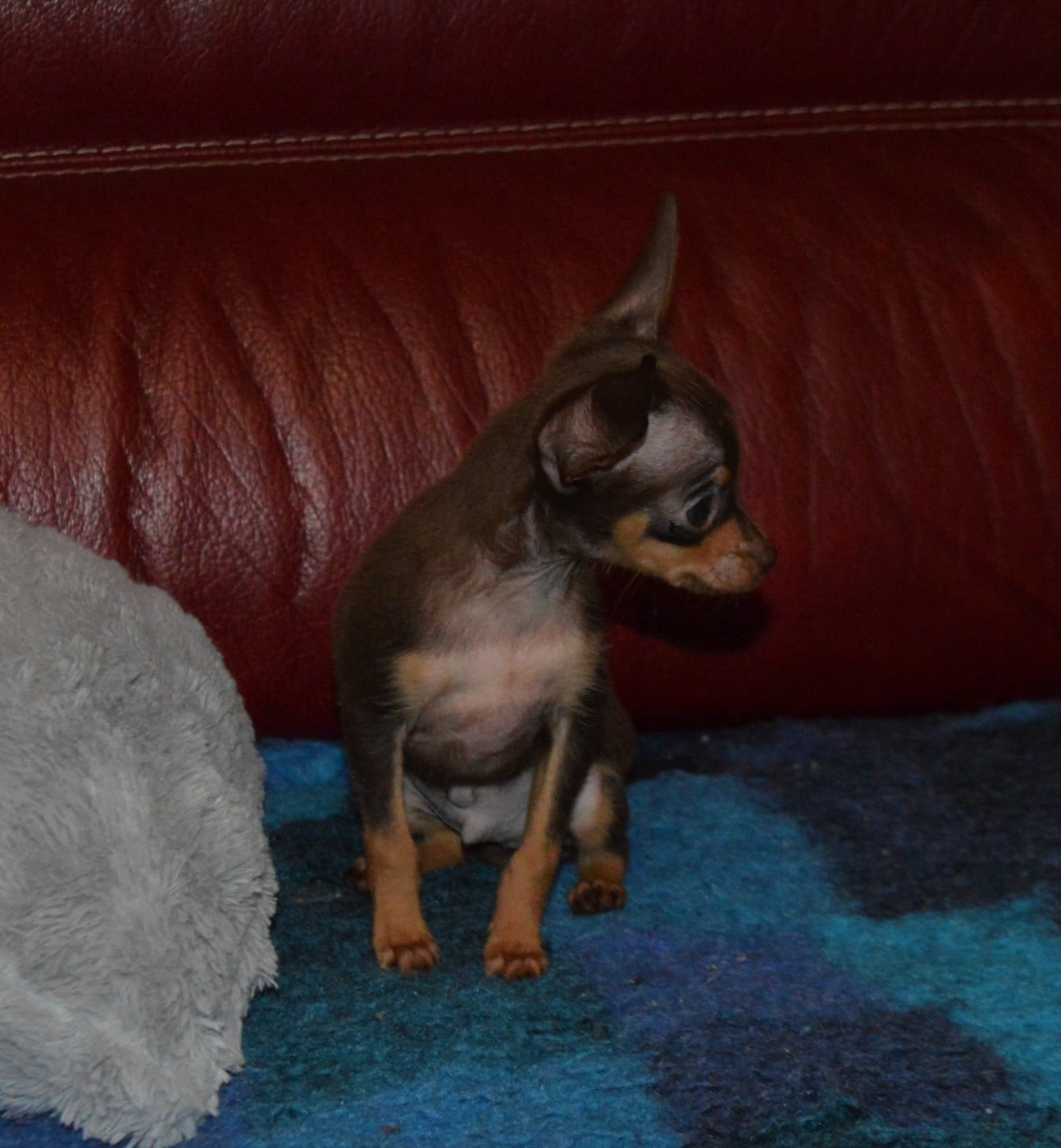 Le dernier chiot disponible! Notre petit Burma est un très beau petit mâle à poil lisse. Il est joueur et câlin. Sa couleur est marron "chocolat au lait" et feu. Il sera de toute petite taille (environ 1,7 kg adulte). A l'âge de 2 mois il pèse 740 g!