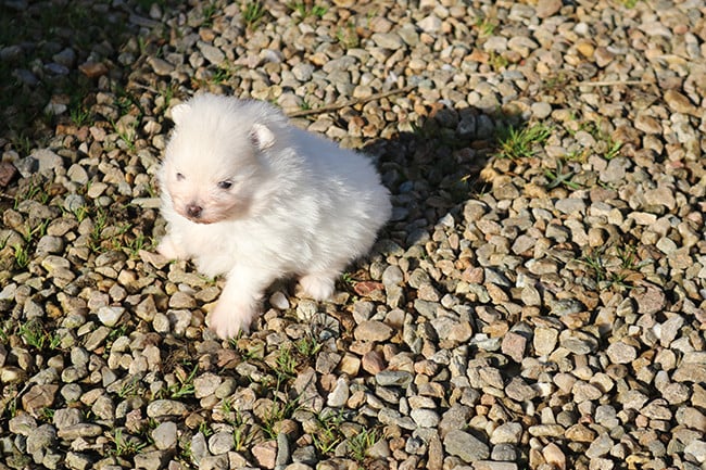un seul et unique chiot en principe blanc de taille nain