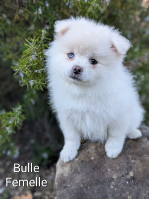* Bulle femelle blanche avec un ?il particolor. Elle est intrépide, très câline et joueuse.