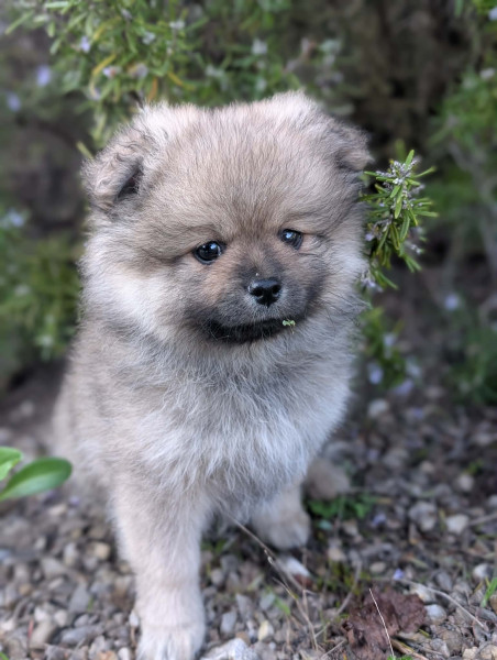 Ursula la maman est une spitz moyen sable charbonnée et Yoshi le papa est un spitz petit merle chocolat. Les parents sont inscrits sur le registre des origines cynophile de l'alliance française canine (AFC), ils sont testés "Embark" race et maladie génétique. Les chiots seront "non lof" mais auront un "pedigree AFC" comme les parents.