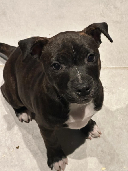 Bonjour sur une portée du 13 janvier 2026 a vendre 1 chiot femelle staffie disponible de suite elle es vacciné pucé et vermifugé le chiot es inscrit au lof pour plus de renseignements merci de me contacter !