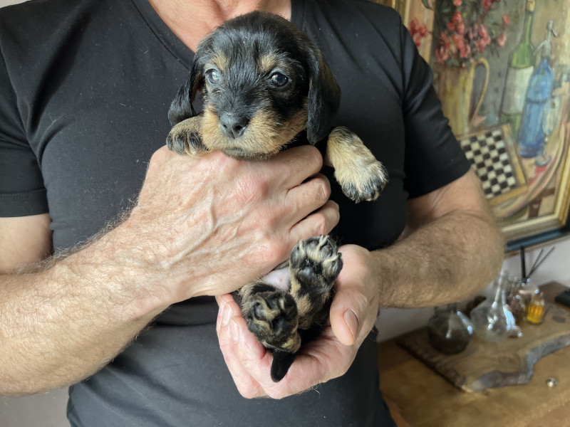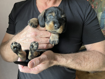 Chiots Teckel standard poil dur LOF nés le 6 février 2026, disponibles à la réservation.